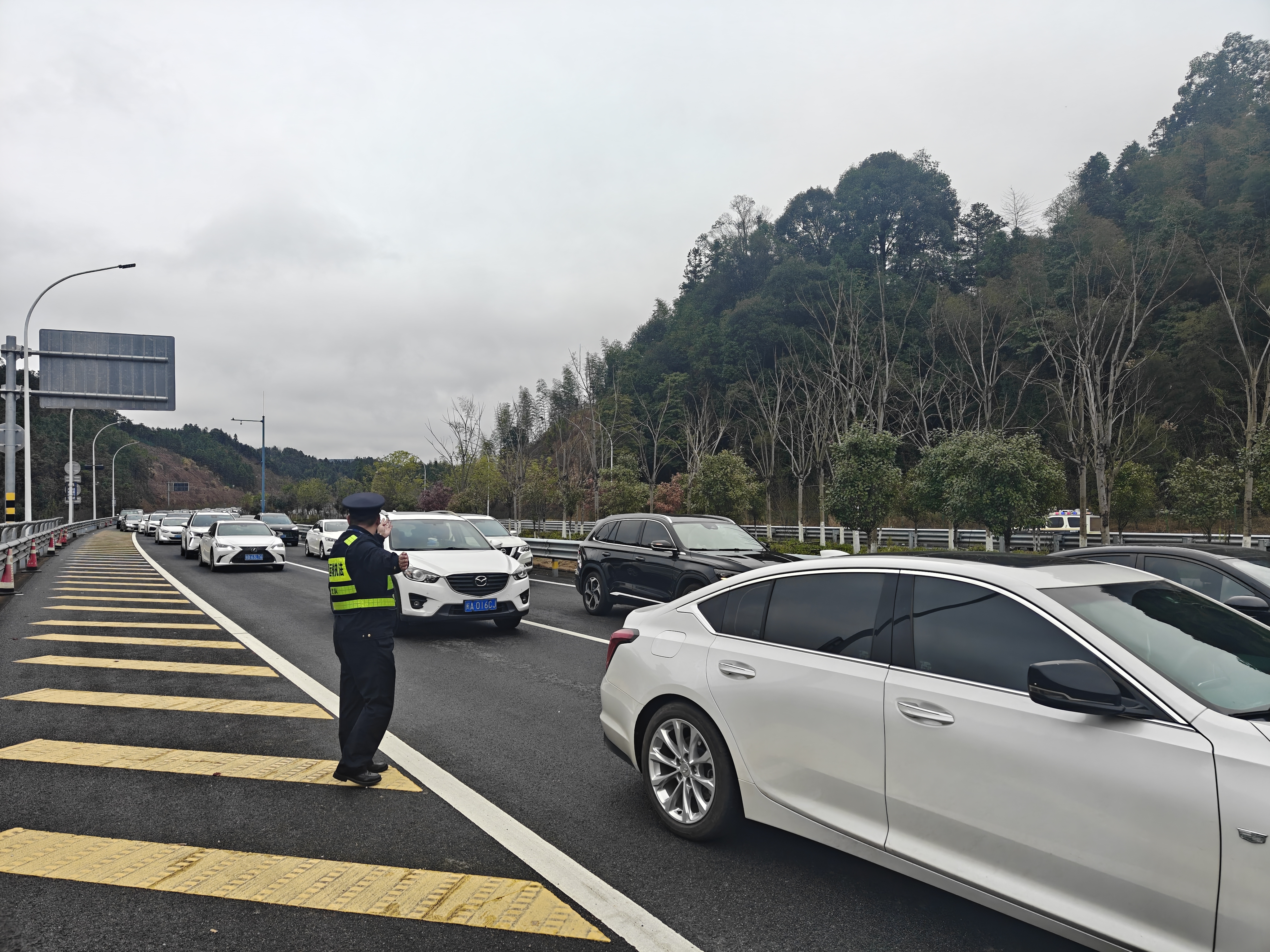协同配合保畅通。春节期间,随着返乡人员显著增多及拜年往来频繁,九支队十大队辖区宜遂高速人流、车流呈爆发式增长,遂川小湖坳、梨树下隧道等部位交通压力持续攀升。面对严峻的通行形势,九支队十大队依托“一路三方”联勤联动机制,强化路况动态监测,加密重点路段、重点部位巡查频次,强化事故应急与快速处置,加强协同疏导,集中力量保障主通道畅通。