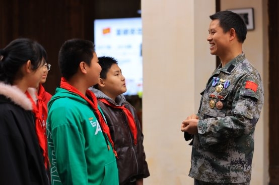 活动现场,宣讲团成员胡国权采用“仪式教育+故事浸润+实地践学”的暖心模式,结合自身军旅生涯、驻村帮扶和基层工作经历,用质朴真挚的语言,深情讲述了一段段保家卫国、为国争光的感人故事——从军营中的坚守,到非洲维和的担当,再到退役不褪色的执着奉献。一个个真实而动人的片段,让孩子们在沉浸式体验中感悟国防的厚重意义,在潜移默化中增强国家安全意识,深刻理解“强国必须强军,军强才能国安”的时代内涵。