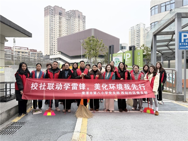 3月4日下午,鹰潭市第八小学党支部联合西站社区党支部开展“校社联动学雷锋,美化环境我先行”志愿清扫活动。