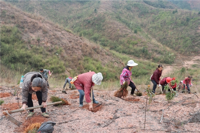 在造林现场,民工李冬春向我们介绍:“植树造林,绿化遂川。我们今天在遂川皇脂公司洲上村中药材基地林下套种岗梅,既绿化了山头,又发展了林下经济,我感觉还蛮好的。”