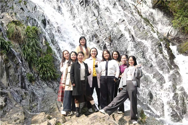活动在春日的山林间拉开序幕。女职工们首先来到九陇瀑布群,漫步峡谷步道,观赏春日飞瀑与山林风光,聆听潺潺流水声,感受自然之美,舒缓工作压力。“平时工作节奏快,很少有机会亲近自然,今天的活动让我身心都得到了放松。”来自申通快递企业的女职工代表龙苏说道。
